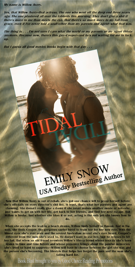 Book Blast: Tidal Posted byJena FreethDecember 14, 2012Posted inUncategorized Now Available on Amazon.com & Smashwords EMILY SNOW I’m the 26-year-old author of the forthcoming DEVOURED series (2012, 2013) and TIDAL (2012). I love books, sexy bad boys, and really loud rock music, so naturally, I write stories about all three. Blog / Facebook / TwitterBook Highlight Hosted by Share this: Click to share on X (Opens in new window) X Click to share on Facebook (Opens in new window) Facebook Like Loading... Related Published by Jena Freeth 30. Boy mom. Book lover. Fitness junkie. Shopaholic. View more posts