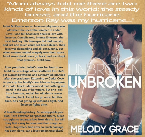 Melody is a small-town girl turned SoCal beach-lover. After spending her life with her nose in a book, she decided it was time to try writing one for herself. She loves bad boys, steamy romances, and (of course) happily-ever-afters.